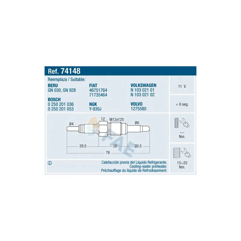 Bougie de préchauffage FAE - 74148