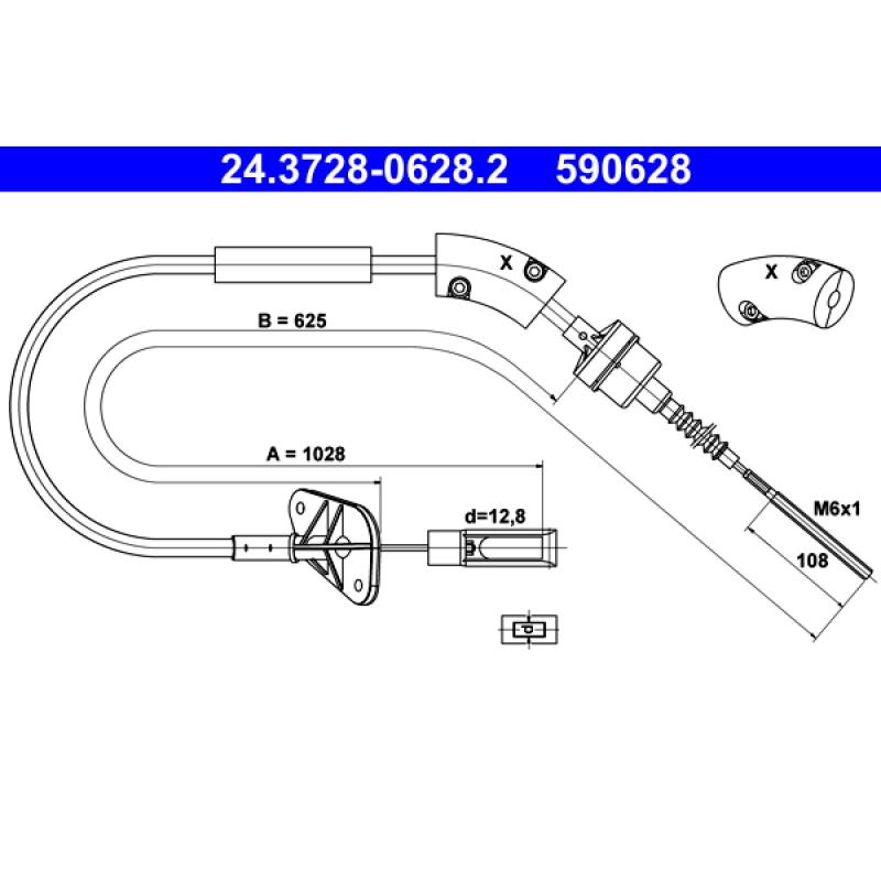Tirette à câble, commande d'embrayage ATE - 24.3728-0628.2