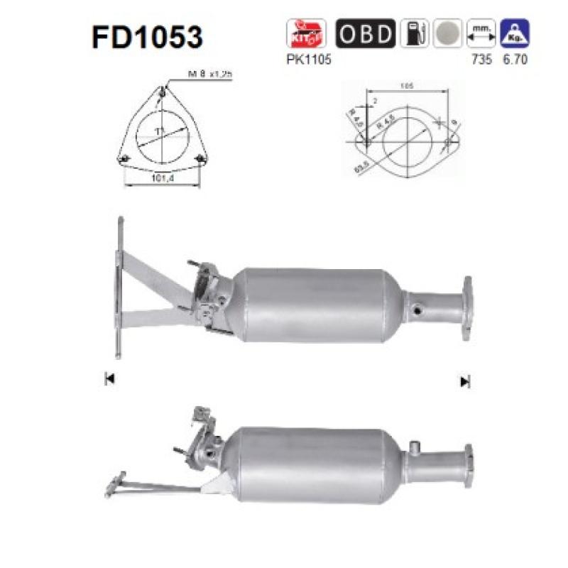 Filtre à particules / à suie, échappement AS - FD1053