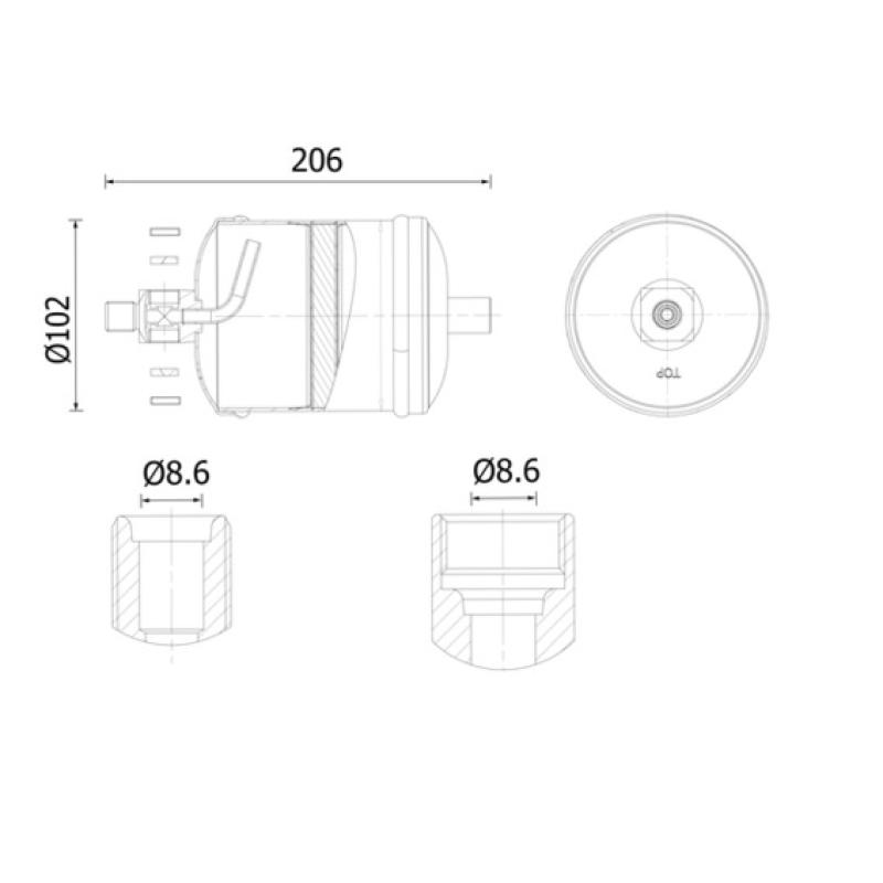 • Ø Sortie : 8,6 mm