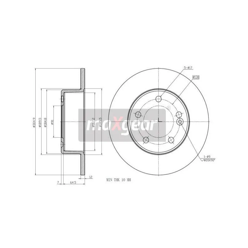 Jeu de 2 disques de frein arrière MAXGEAR - 19-2011