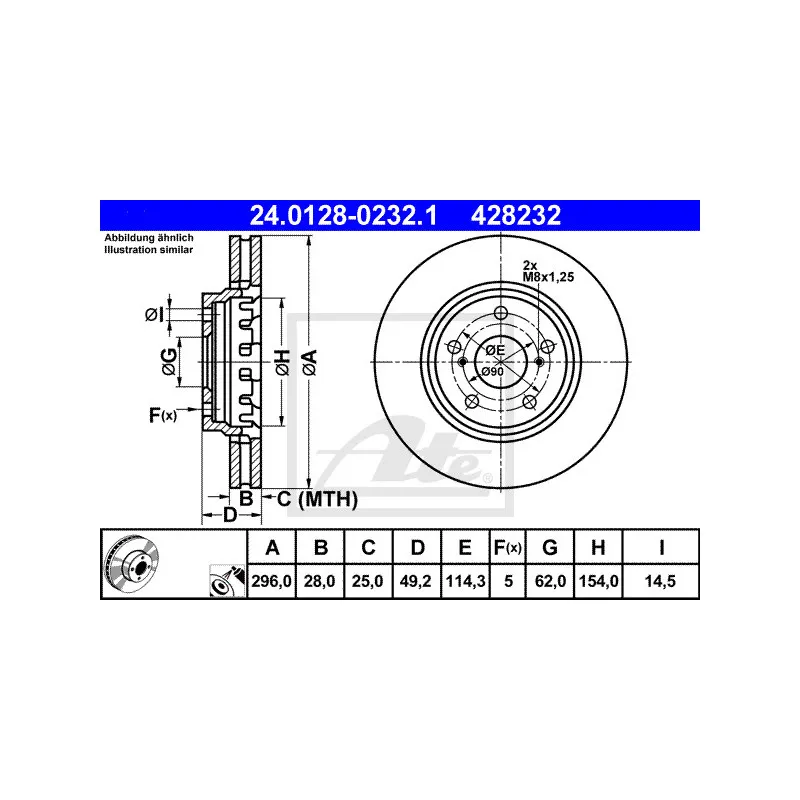 Jeu de 2 disques de frein avant ATE - 24.0128-0232.1