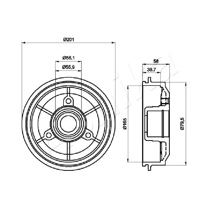 Tambour de frein ASHIKA - 56-00-0607
