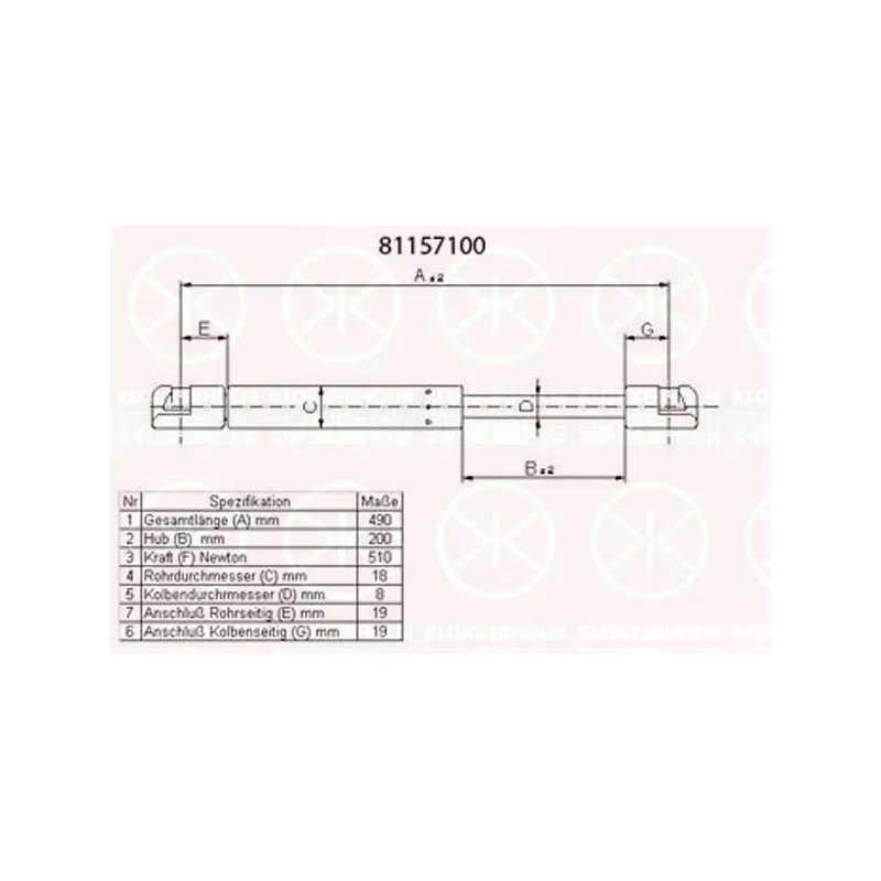 Vérin de hayon, de coffre KLOKKERHOLM - 81157100
